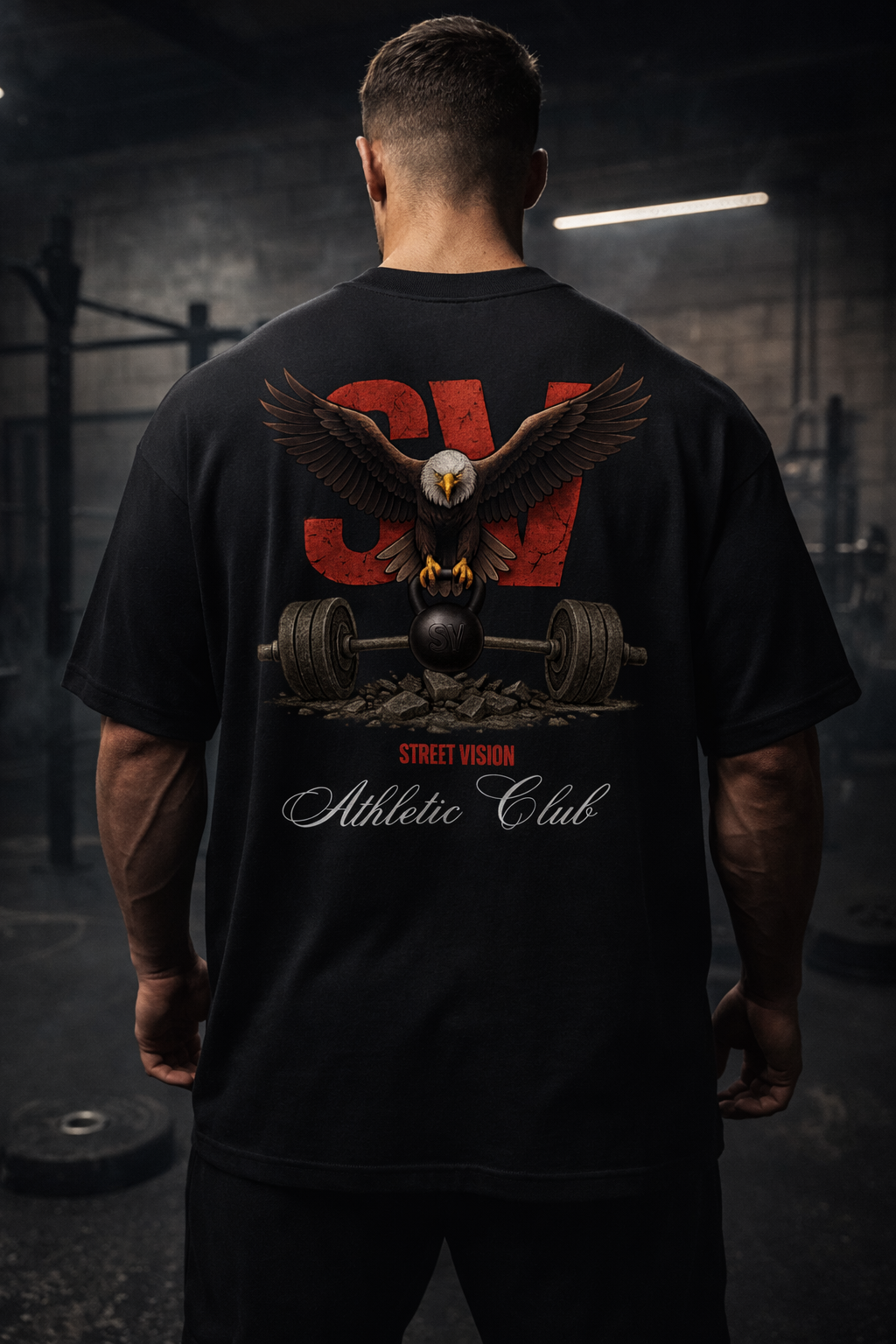 A Oversized Street Vision Athletic Club foi criada para quem carrega atitude dentro e fora da academia. Uma peça que mistura estética streetwear pesada com energia do universo fitness, trazendo presença forte, conforto e qualidade premium.